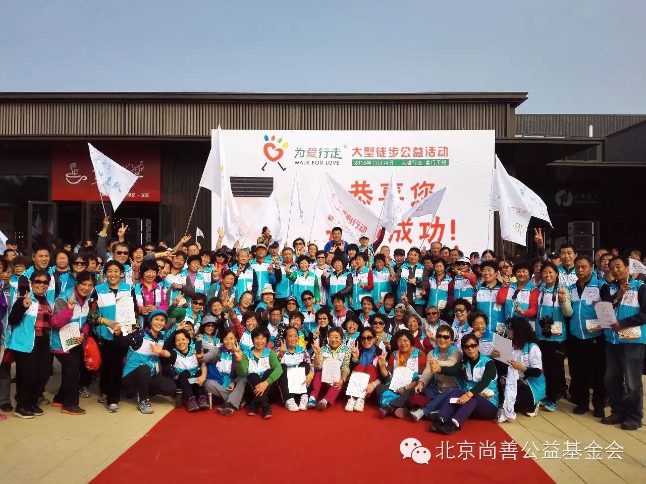 11月14日,在风景秀丽的无锡灵山,由3500余人组成的600余支爱心队伍统一集结,参加“为爱行走”大型徒步公益活动,通过行走的方式为公益筹款。来自北京、上海、天津、江苏、山东、河北、内蒙、黑龙江、湖北等不同城市和地区的140位失独老人组成的35支“尚善暖心队”在下午14时携手完成了15公里的越野徒步挑战。