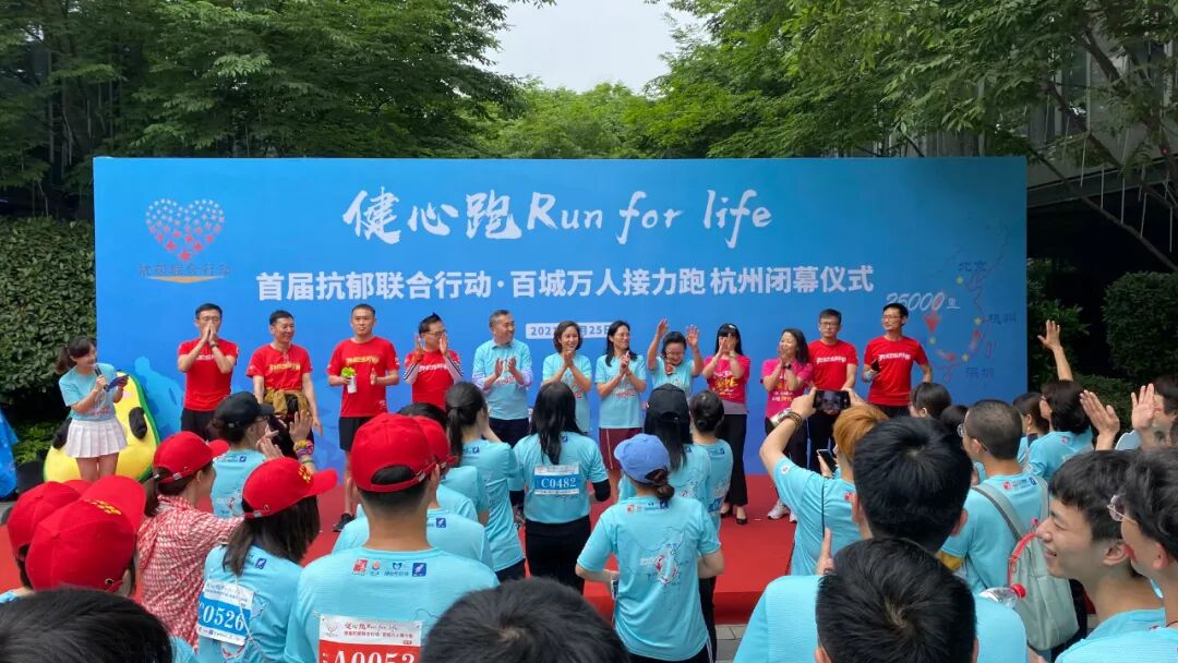 4月25日,“健心跑”以1375000多万公里,110个“心理健康的二万五千里”迎接杭州闭幕仪式隆重举行。浙江省心理卫生协会副理事长傅素芬、浙江省儿童青少年心理健康委员会副主任刘健,尚善公益基金会理事长毛爱珍,绿城爱心基金会理事长、郁金香陪伴创始人刘虹先后致辞。中国最年长全球马拉松大满贯获得者、民间抗郁志士等六位来自各界的抗郁健跑精英作为闭幕式旗手,与现场上百名跑者共同奔向终点。