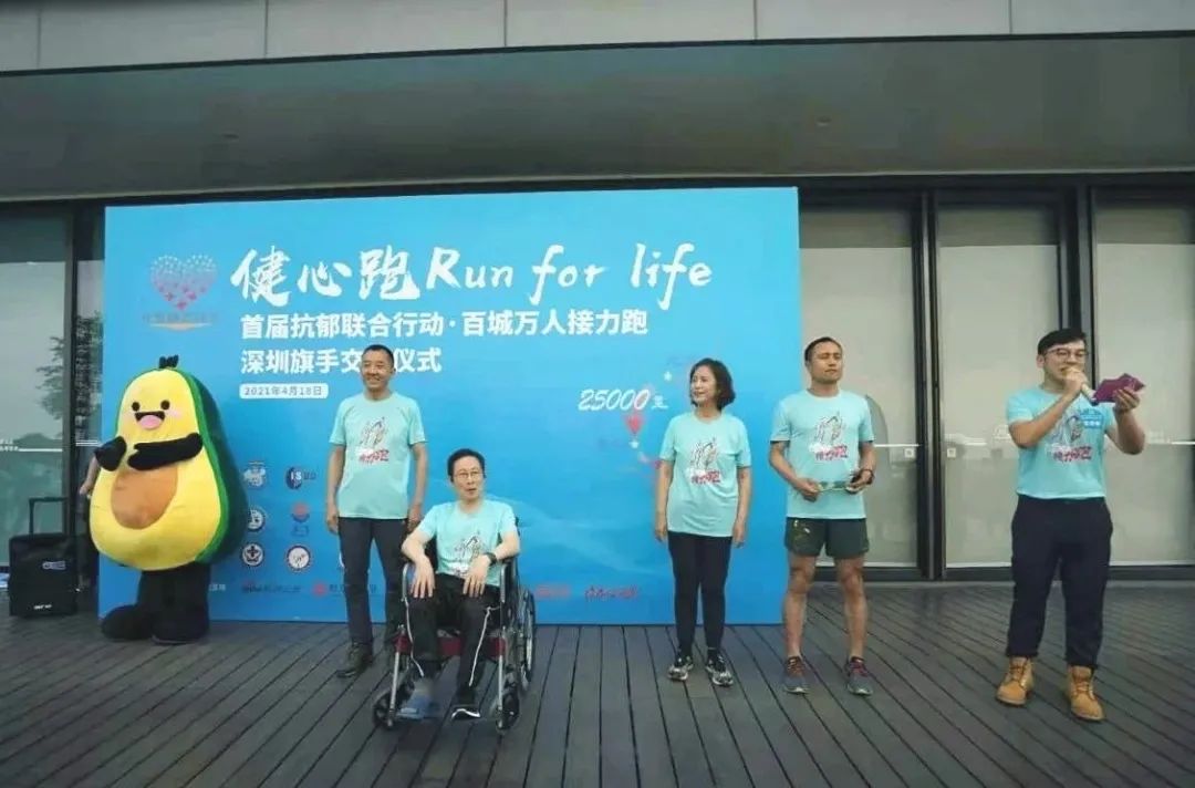 4月18日,“健心跑”一跑高歌猛涨,深圳站旗手交接仪式时,全国已有13000多名参跑者,共同完成了80个“二万五千里”!深圳市社会心理服务协会会长、深圳市康宁医院院长刘铁榜带伤出席仪式并致辞,渡过平台始创人张进讲话。前“全国优秀县委书记”,公益人陈行甲作为深圳站旗手,扬起“心理健康二万五千里的旗帜”领跑第三程!