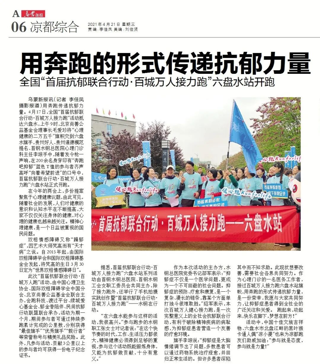 由中国心理卫生协会、国际双相障碍学会中国分会、北京尚善公益基金会共同主办的为期一个月的大型活动“首届抗郁联合行动 · 百城万人健心接力跑”,在4月25日完美收官!