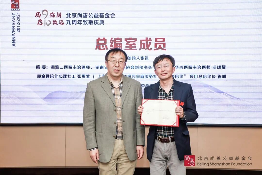 回顾 9 年历程,我们深切地感受到,构建抑郁症防治社会支持系统需要各方面力量的参与和共同努力。尚善着力于搭建平台,联结力量,在抗郁公益路上,有幸与许多同道伙伴携手前行,值此尚善九周年致敬庆典之际,向给予我们支持与协力的社会各界伙伴同仁表示由衷的致谢!