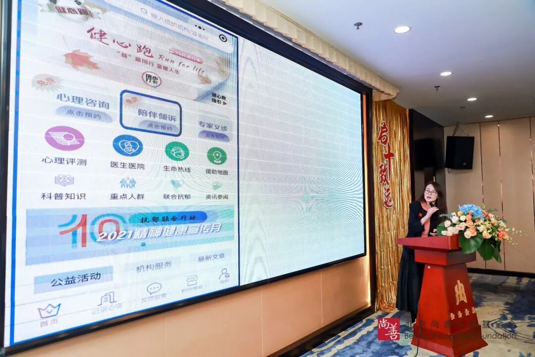 嘉宾发言环节以尚善公益基金会辛欣秘书长分享《【尚善健心】小程序——数字化的探索与实践》,向在场嘉宾演示了尚善健心的主要功能及使用场景作为收尾。