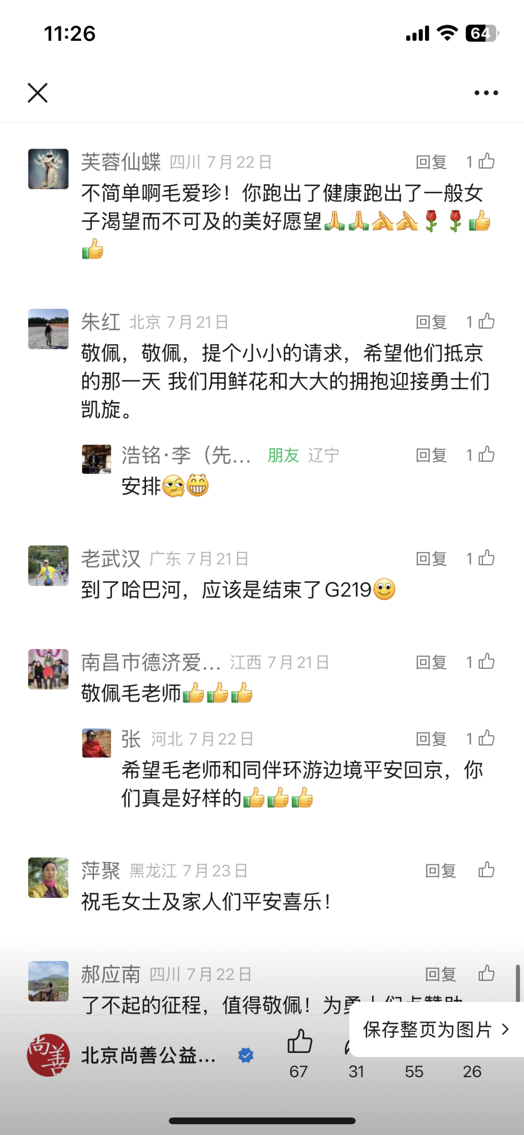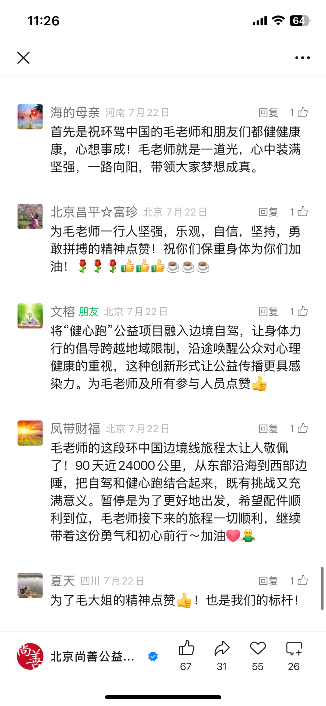 大家熟悉的毛爱珍老师,她环驾中国边境线的旅程,在七月已经抵达内蒙境内。这一路,有平坦,也有坎坷;有顺利,也有意外。出发时的忐忑,途中遇到的暴雨、复杂路况,都让这段旅程充满挑战。但也正是这些经历,让旅程变得更加精彩。