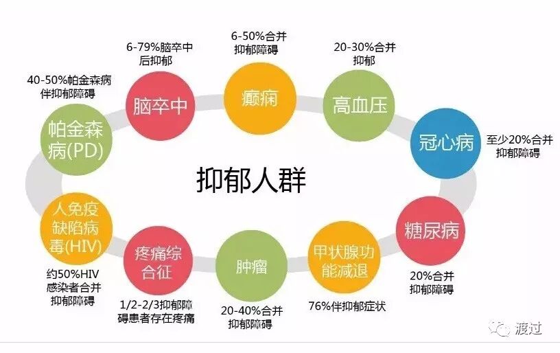 本图出自《中国抑郁障碍防治指南》第二版,还有一些新发现的生理疾病的共病未列入其中。