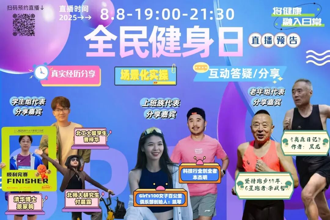 8月8日,基金会举办“针对不同年龄段群体解锁‘运动健心’新姿势”专场直播。活动邀请来自学生党、上班族、银发族三大群体的7位达人,分享真实经历和实操干货,覆盖“运动缓解情绪压力、科学健身方法”等核心需求,帮助各年龄段人群将健康融入日常。
