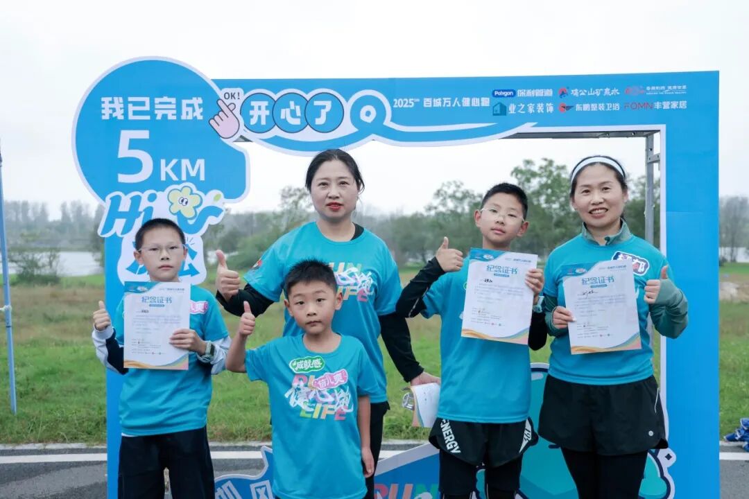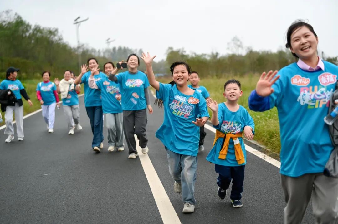 就像我妈妈,我从来没见她跑过步,最多就是快走。而确实有很多人是不跑步的,所以我们的活动把门槛降到最低,从6岁到70岁都可报名参与,活动的起点选在浉河南岸全龄运动场,就是为了让老人和孩子都能参与。虽然活动当天还下着毛毛雨,然后温度也比较低,但是活动现场还是来了一千多人,其中有300余组家庭,很多家长趁着周末带着孩子来参加,还有祖孙三代一起参与的,可以说这是一场全民参与的、覆盖全年龄段的活动。