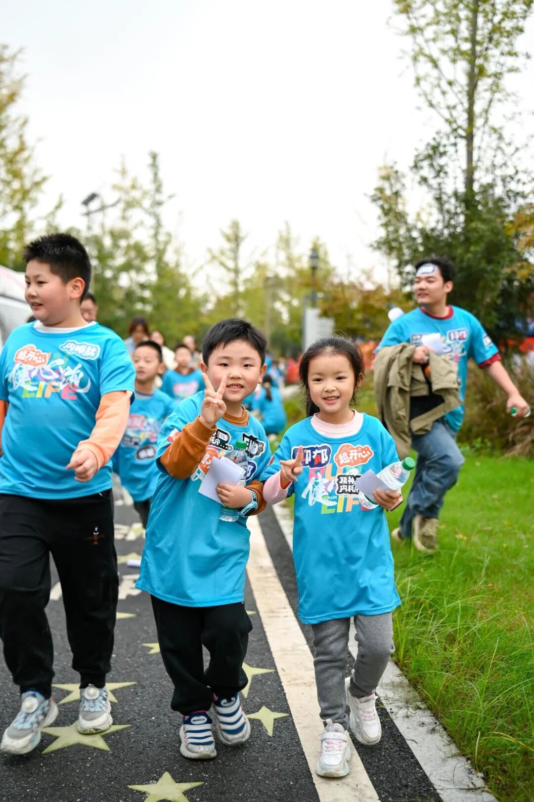 因为只有5公里,所以健心跑特别适合做亲子活动。我单身的时候经常参加跑步、徒步、读书会等活动,但是生娃之后我更愿意选择能带着孩子一起参与的亲子项目。今天上午我们还去浉河北岸参加了幼儿园组织的五公里徒步,孩子举着健心跑的联名旗一直跑在队伍的前面,特别开心。