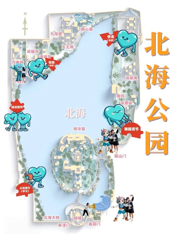 活动当天,北海公园内将在健走路线沿途精心设置 5 处心理健康科普互动打卡点。